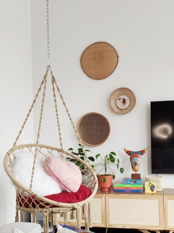 Influenciado pelo movimento hippie dos anos 1960 e 70, o boho aposta na mistura de texturas, estampas e cores, com um toque mais descontraído. É marcado pelo uso de texturas como linho, algodão, palha e macramê, além de valorizar peças artesanais na decoração. Tons terrosos, rosa queimado, verde oliva e amarelo mostarda aparecem com frequência.