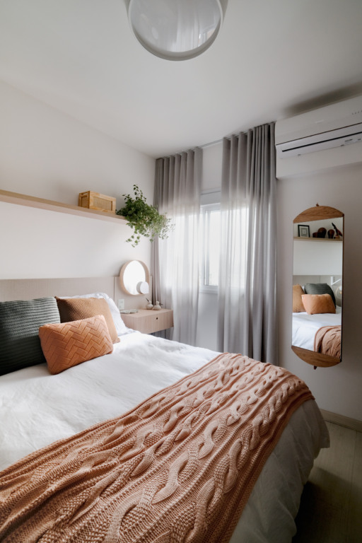 “A gente gosta também de usar mobiliários soltos e inteligentes, que você consegue levar com você para outros lugares. E a produção também faz muita diferença: cortinas, tapetes, almofadas e adornos no geral são itens que trazem muita cara de finalização e amarram essa sensação de casa”.